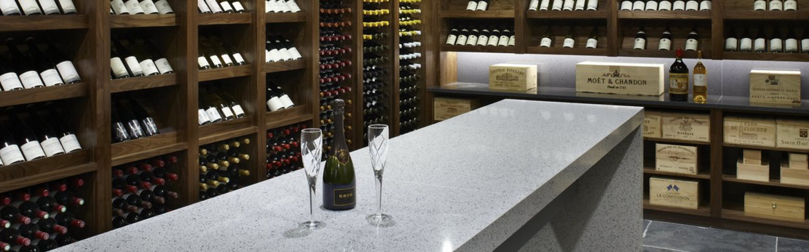 Terrazzo er støpt betong iblandet granitt eller marmor for å oppnå forskjellige mønstre. Våre benkeplater av type XQ kvalitet er tilsatt et bindemiddel av styren som gjør de svært sterke. Denne overflaten er svært tett, noe som gir en hygienisk plate som man lett holder ren. Vi tilbyr et stort utvalg av benkeplater i Terrazzo.